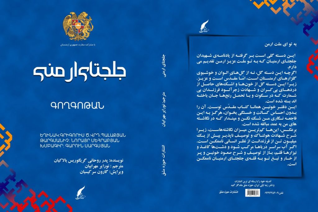 نویسنده کتاب”جلجتای ارمنی” فاجعه نسل کشی ارامنه را با تمام وجود تجربه نموده و بازمانده معجزه آسائی است که توصیفات احساسی و سطور عاطفی او بطور مستقیم خواننده را تحت تاثیر قرار میدهد.نسل کشی ارمنیان که از سوی ترکیه عثمانی با تفکرات و برنامه ریزی قبلی و دستورات منظم و رسمی به مرحله اجرا در آمده و تا کنون بدون مجازات مانده است،همواره تهدید و خطری است در جهت تحقق نسل کشی های جدید در قرن بیست و یکم مترقی و پیشرفته ما .علائم اولیه آن همه روزه در این منطقه یا آن منطقه از جهان،در کسوت ظاهری جنگ ها و ترور ها مشاهده میشود…